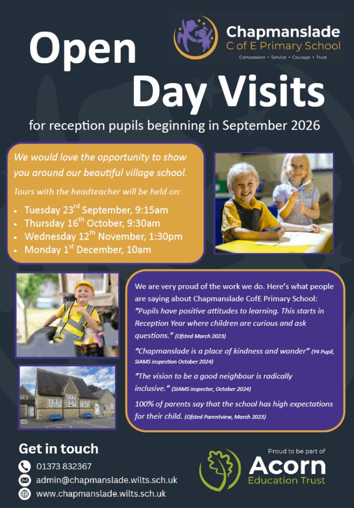 Chapmanslade Church of England Primary School is now part of Acorn Education Trust after joining on Tuesday 1st April.